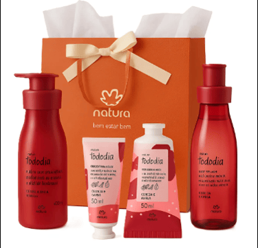 Kit Tododia Cereja E Avelã Natura Presente 4 Itens + Sacola