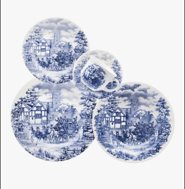 Biona Aparelho De Jantar E Chá 30 Peças Donna Cena Inglesa Cor Azul