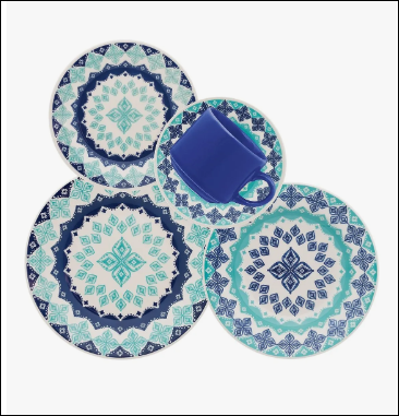 Jogo Aparelho De Jantar Donna Lola 30 Peças Oxford Biona Azul Florido