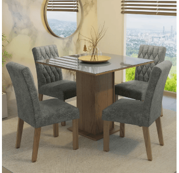 Sala Jantar Mesa Tampo Vidro 4 Cadeiras Anaju Madesa Rcs Cor Rustic/Cinza/Silver Desenho do tecido das cadeiras Liso MDJA040138F9SIL