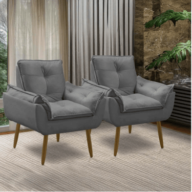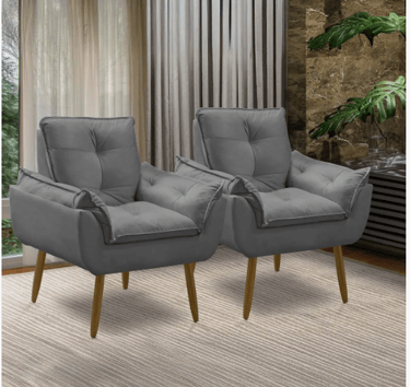 Kit 2 Poltronas Decorativa Opala Pés Madeira Cinza Império
