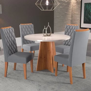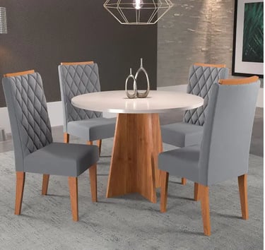 Mesa de Jantar 4 Lugares Disney Mel/Blonde/Veludo Cinza - Panorama Móveis