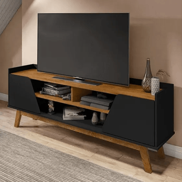 Rack Sala Turim para TV até 65 Polegadas com Pés Madeira - Móveis Bechara