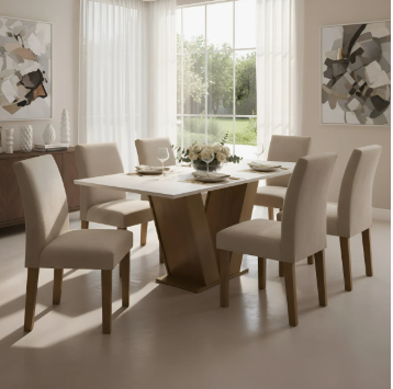 Mesa De Jantar Tampo Mdf 6 Cadeiras Espanha Espresso Ej