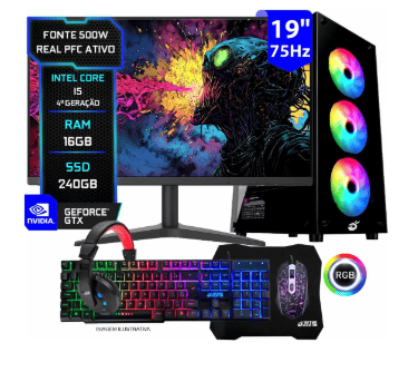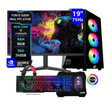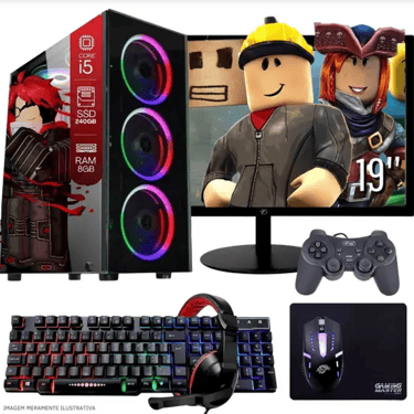 Computador PC Gamer Completo TOB Intel Core i5 SSD 240GB 8GB Teclado Mouse Mouse Pad e Headset Gamer Joystick Monitor 19" Windows 10 Pro Trial - TOB COMPUTERS
