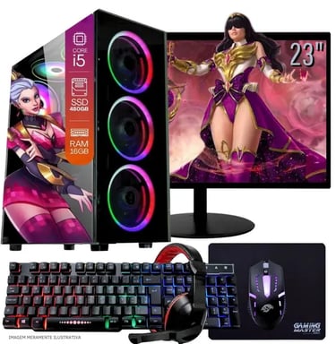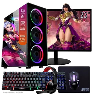 Computador PC Gamer Completo TOB Intel Core i5 SSD 480GB 16GB Teclado Mouse Mouse Pad e Headset Gamer Monitor 23 Windows 10 Pro Trial - TOB COMPUTERS