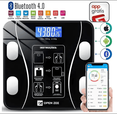 Balança Bioimpedância Digital Com Aplicativo Bluetooth Histórico Gratuito Banheiro Precisão Digital Profissional App Em Português Para Android E Ios - OPEN ZEE