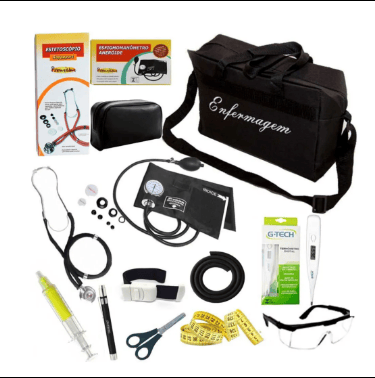 Kit De Enfermagem Completo 11itens Esfigmomanômetro + Esteto Cor Preto